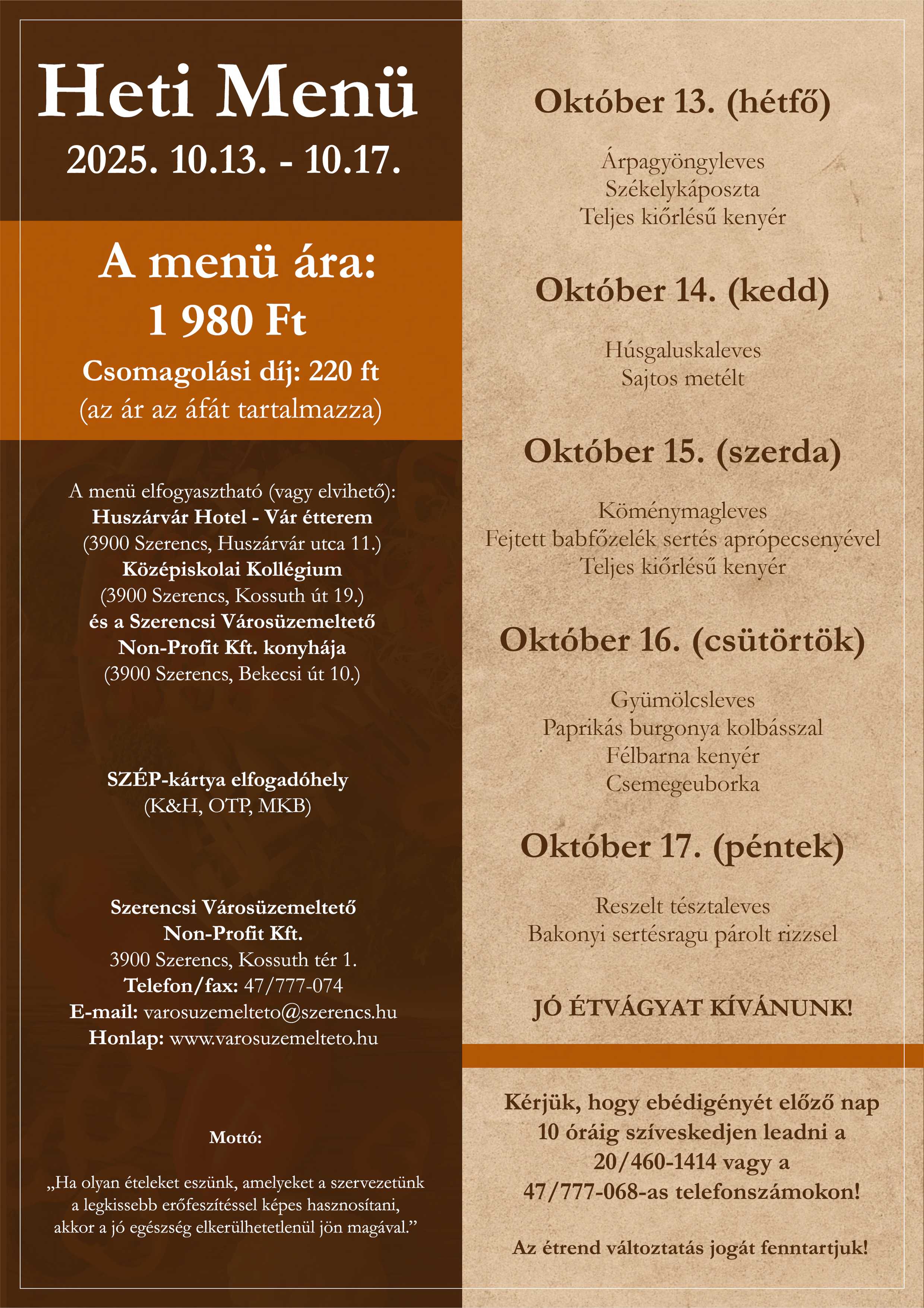 Kiváló minőségű, friss alapanyagokból készült ízletes ételek széles skálájáról kínákunk egészséges, változatos étkezési lehetőséget a mindennapokra, akár helyben fogyasztással, akár elvitelre is.