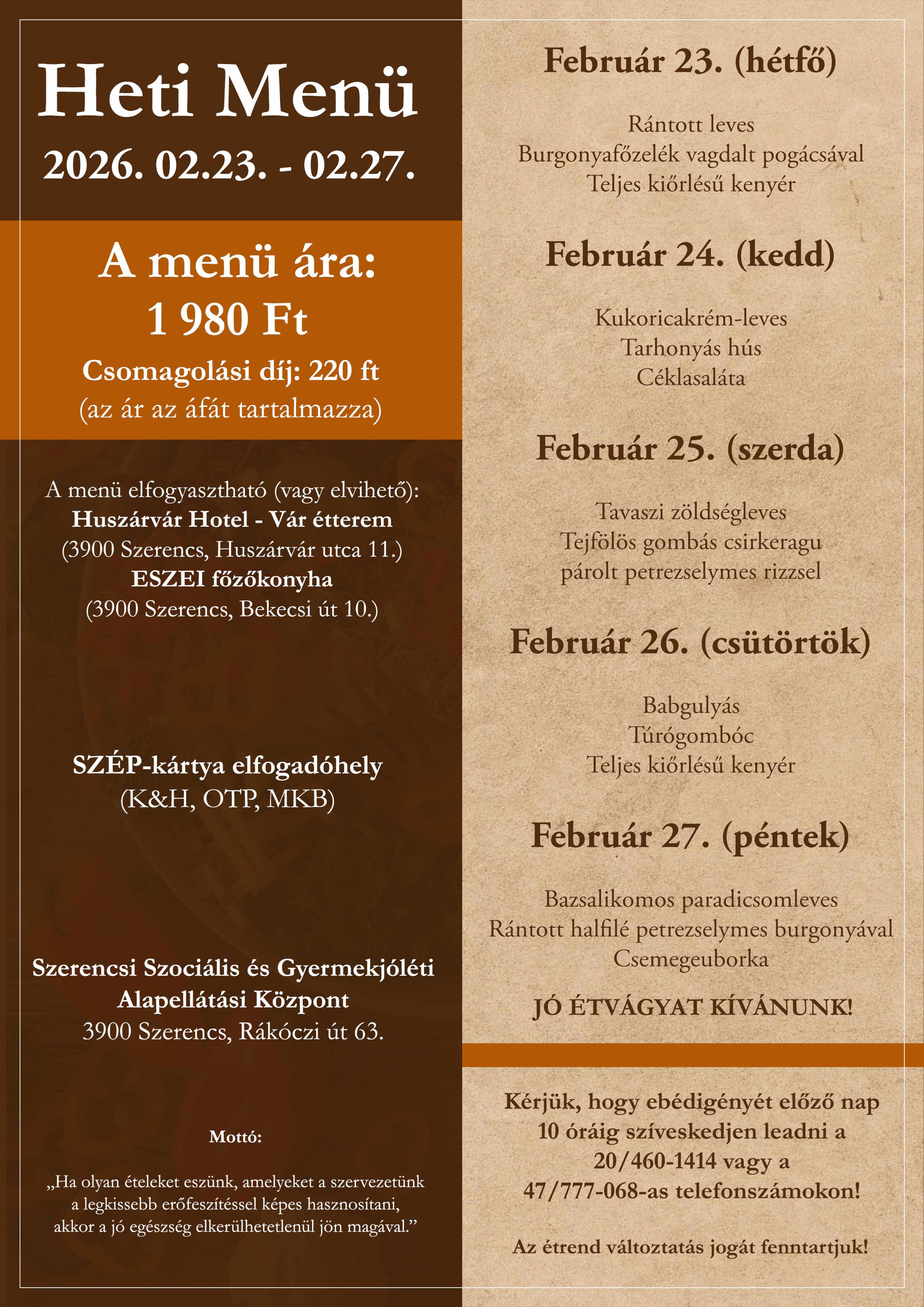Menü ajánlat