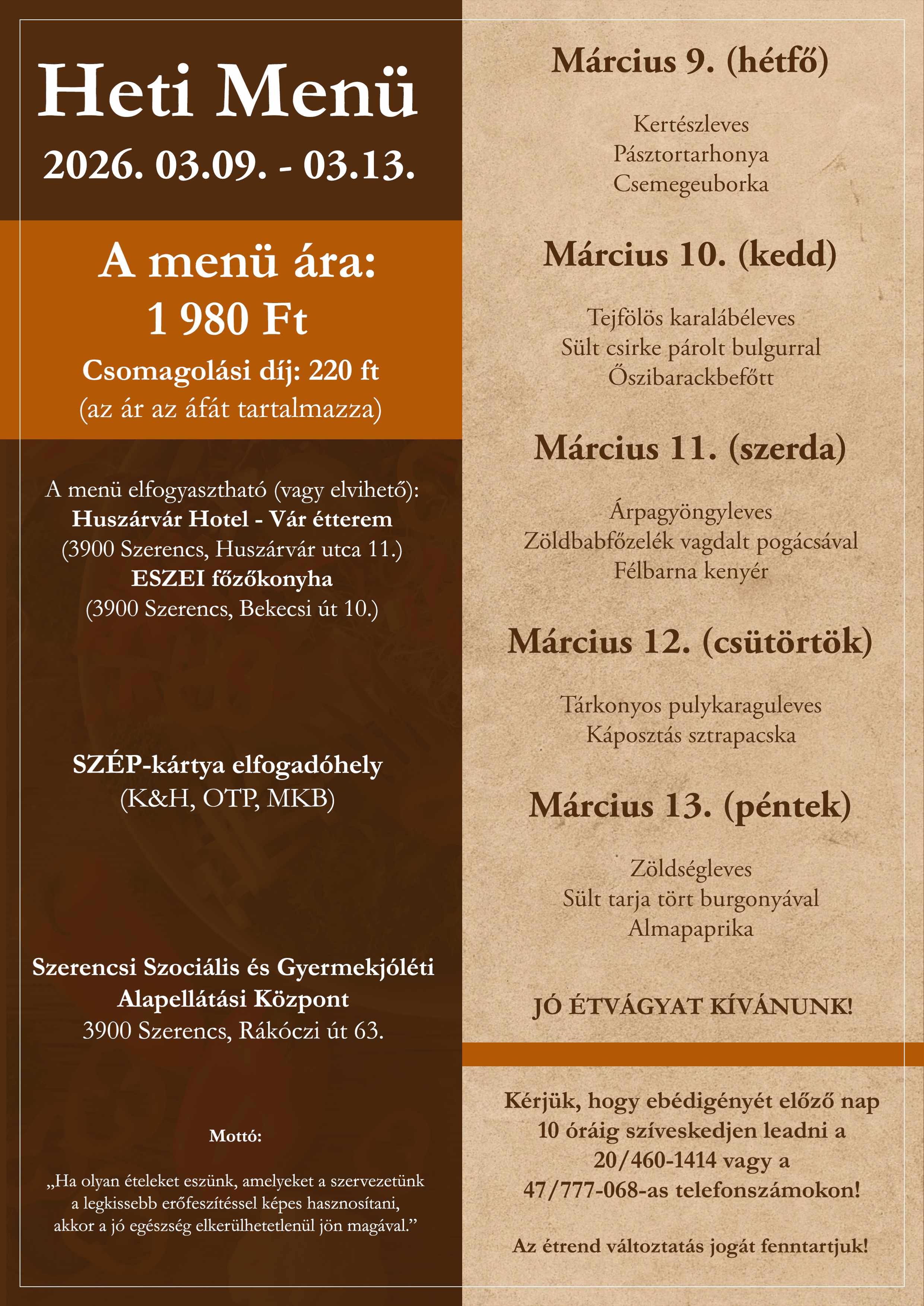 Menü ajánlat